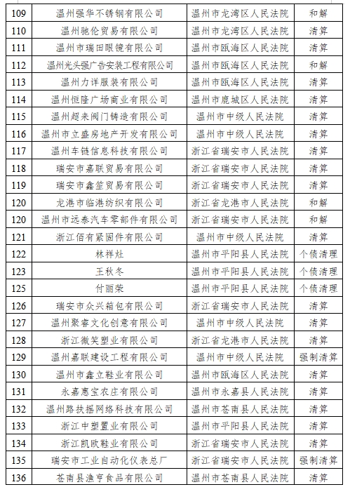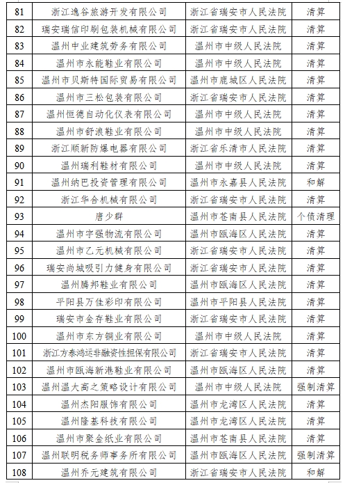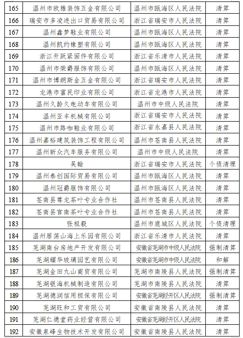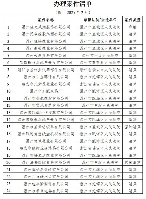 自2017年11月進入人民法院破產管理人名冊以來,已被溫州市中級人民法院、溫州市鹿城區人民法院、甌海區人民法院、龍灣區人民法院、瑞安市人民法院、樂清市人民法院、龍港市人民法院、永嘉縣人民法院、平陽縣人民法院、蒼南縣人民法院、安徽省蕪湖市中級人民法院、蕪湖市鳩江區人民法院、蕪湖市灣沚區人民法院、蕪湖經開區人民法院、無為市人民法院、南陵縣人民法院等多家法院指定擔任210余家企業破產管理人/清算組,涉及企業類型涵蓋金融投資、房地產開發、建設工程、機械制造、環保科技、進出口貿易等領域,涉及服裝、鞋帽、汽配、眼鏡、紡織、印刷、光伏、建材等多個行業。管理債權規模近300億元,依法處置(含待處置)破產財產市值近100億元。