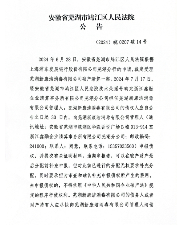 浙江鑫融企業清算事務所有限公司蕪湖分公司