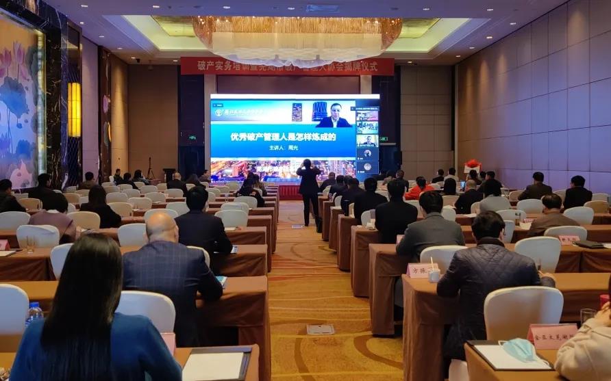 培訓活動開始前,市司法局黨委委員、副局長劉琪代表主管機關講話,對破產業務的開展和管理人協會工作提出了希望與要求,并與蕪湖市中級人民法院清算與破產審判庭庭長王瓊共同為蕪湖市破產管理人協會揭牌。