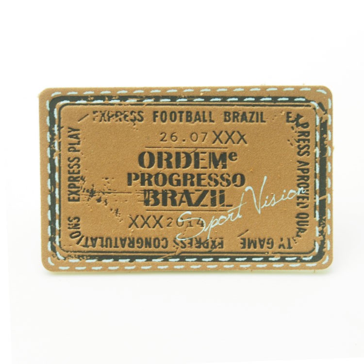 產(chǎn)品工藝:皮牌的工藝一般為熱壓(高溫定時(shí)燙)居多,熱壓,電壓(高周波),絲印,激光,車線,繡花,打五金...等等,主要是看設(shè)計(jì)師的設(shè)計(jì)內(nèi)容,根據(jù)設(shè)計(jì)師所想表達(dá)的主題來體現(xiàn)出來,不同主題配合不同材質(zhì)自然要不同的工藝來體現(xiàn)