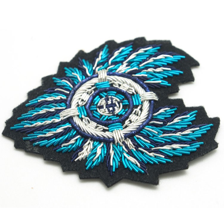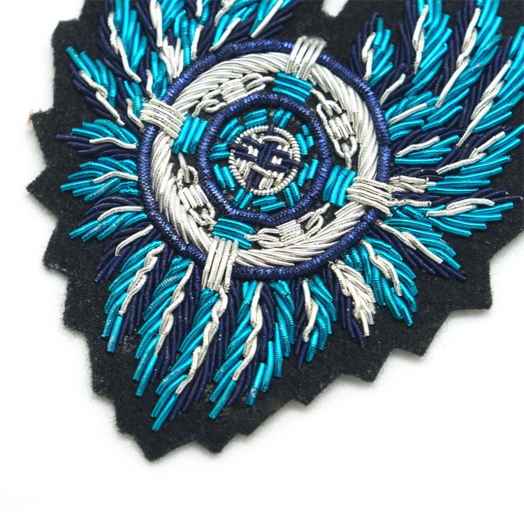 印度絲繡花章,早起源于印度,故又稱印度絲徽章、銅絲徽章、彈簧絲徽章、印度繡花章、金屬刺繡章等,采用印度特有的金屬線為主要材料,并用傳統(tǒng)的手工藝?yán)C花,一針一線刺繡而成。其手工精細(xì),令人嘆為觀止,繡出來的產(chǎn)品高檔華麗,層次分明。