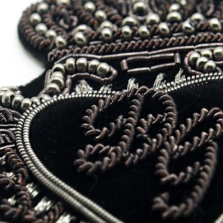 印度絲繡花章,早起源于印度,故又稱印度絲徽章、銅絲徽章、彈簧絲徽章、印度繡花章、金屬刺繡章等,采用印度特有的金屬線為主要材料,并用傳統(tǒng)的手工藝繡花,一針一線刺繡而成。其手工精細,令人嘆為觀止,繡出來的產(chǎn)品高檔華麗,層次分明。